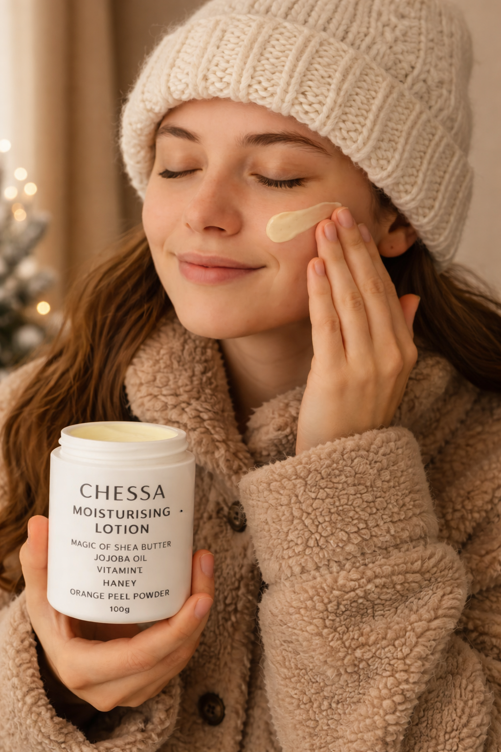 CHESSA Moisturising Lotion deeply nourishes and hydrates your skin with the goodness of Shea Butter, Jojoba Oil, Vitamin E, Honey, and Orange Peel Powder. Its smooth, lightweight formula helps keep your skin soft, moisturized, and naturally glowing throughout the day. Perfect for daily use to maintain healthy, refreshed, and radiant skin.